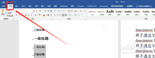 第三,选中文字后点击word上方【起头】选项卡,如图中所示。