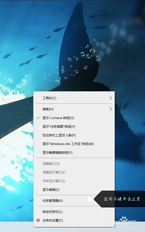 在电脑下方使命栏处,单击鼠标右键,找到使命办理器。