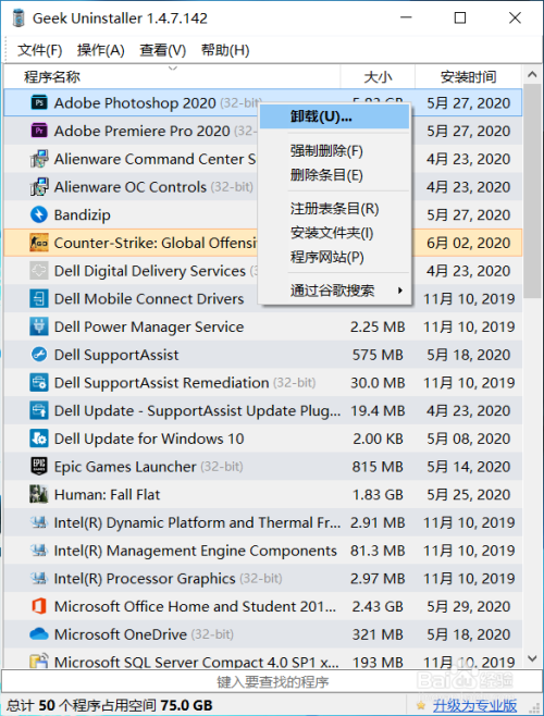 这里保举一个很是好用的卸载软件geek,长处是体积很是小,几乎不占内存,并且卸载的十分清洁,不会有残留。不会带有任何绑定软件,免费版的也很好用。