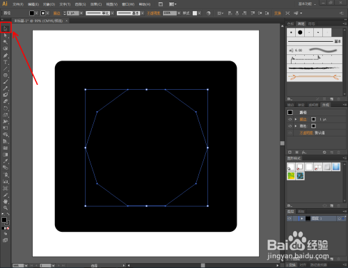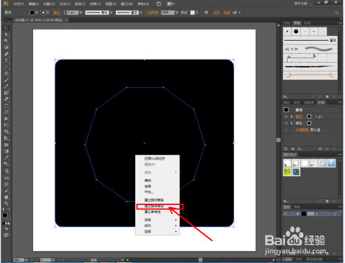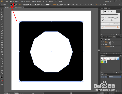 点击【选择东西】,同时选中圆角矩形图案和十边形图案。点击鼠标右键-【成立复合路径】,将两图案路径进行连系;