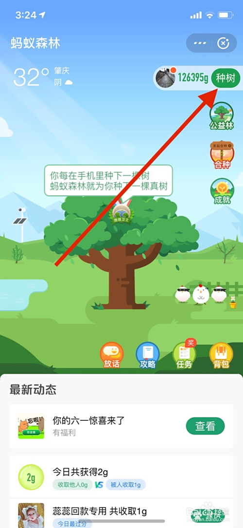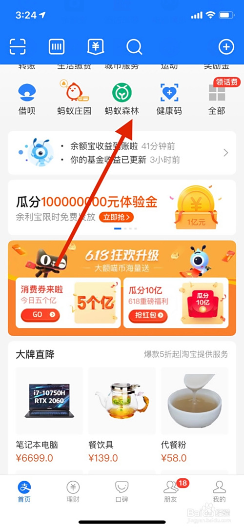 点击支付宝界面蚂蚁丛林进入。
