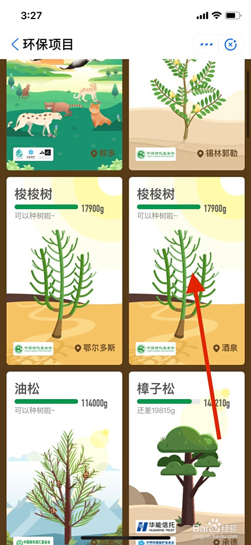 4、滑动页面点击莳植的树种。