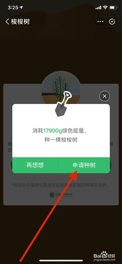 6、点击申请种树确认种此树种。