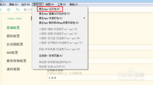 打开HBuilder东西,选择落成的项目,点击刊行,选择刊行为原生安装包。