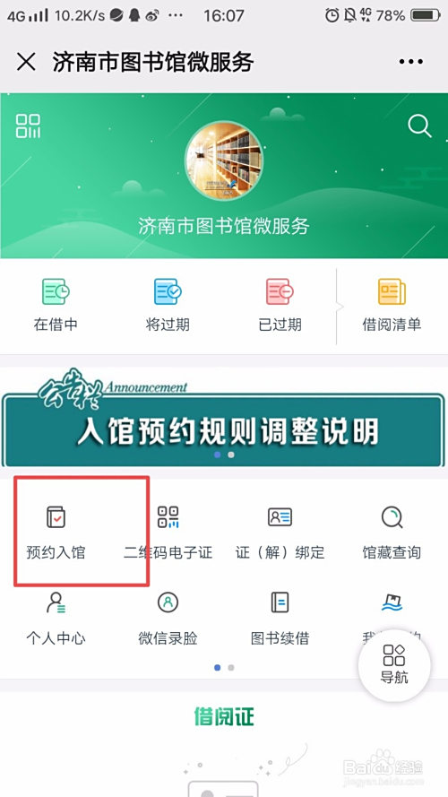 点击【预约入馆】;