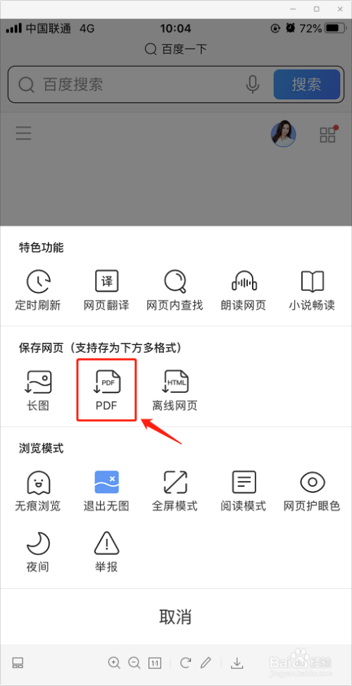 若何将手机浏览器页面保留为PDF文件,起首,进入手机QQ浏览器,打开搜刮引擎,点击下方如图所示按钮。