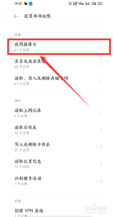 第四步:点击【设置单项权限】(或者点击【相机】也可)