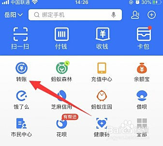 进入首页后,点击“转账”