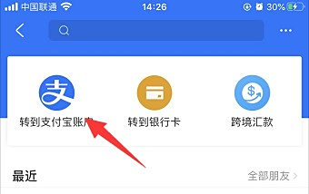 进入转账界面后,点击“转账到支付宝”