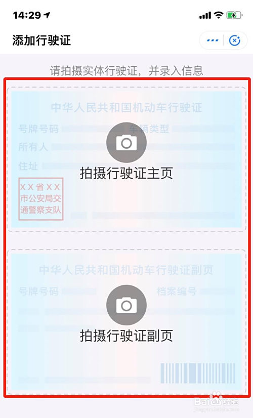 拍摄行驶证本家儿副页照片