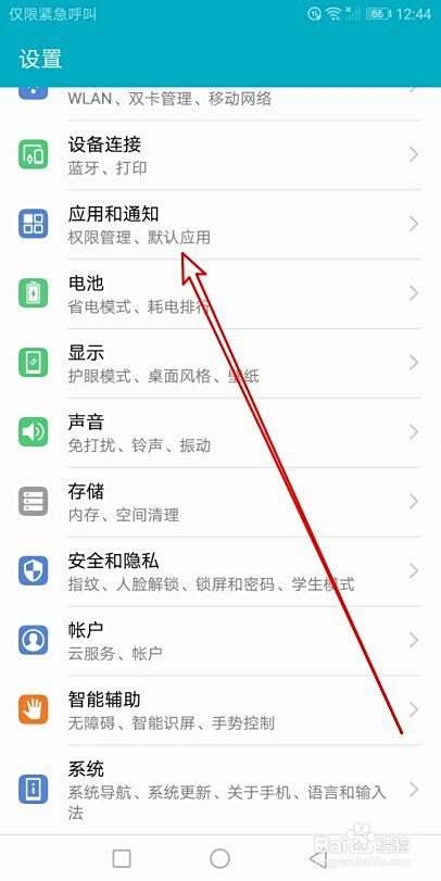 起首打开华为手机的设置页面,点击应用和通知的菜单。