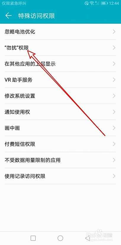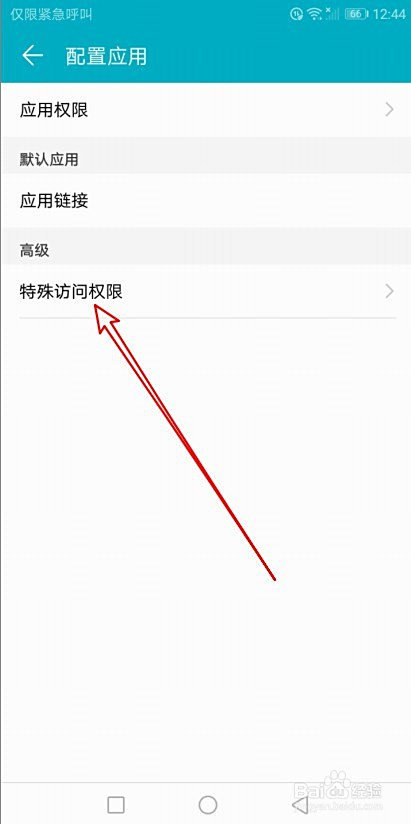 这时会打开设置装备摆设应用的页面,点击特别拜候权限的设置项。