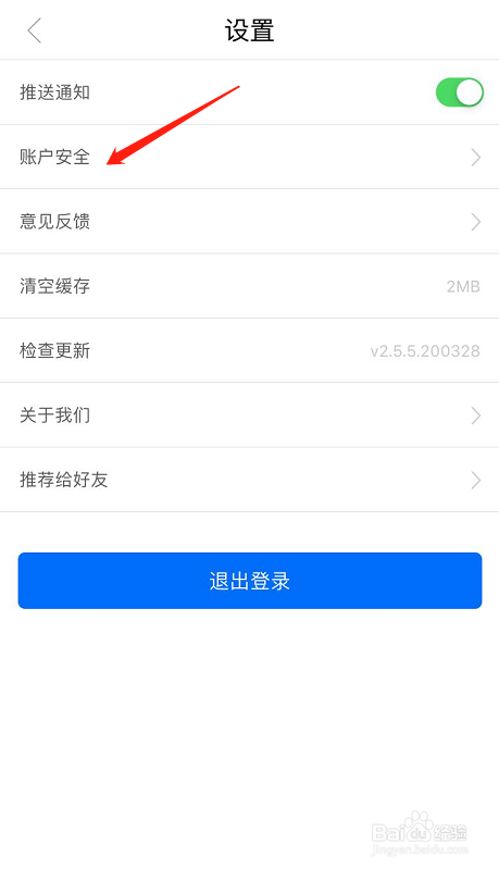 打开设置后,点击账户与平安,如下图所示: