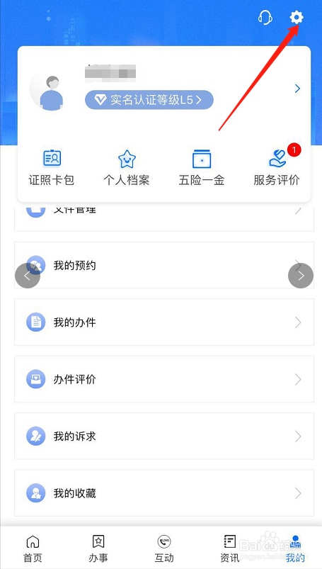 打开我的之后,点击右上角设置,如下图所示: