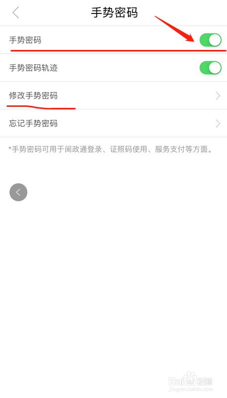 点击开启手势暗码就可以了,如下图所示: