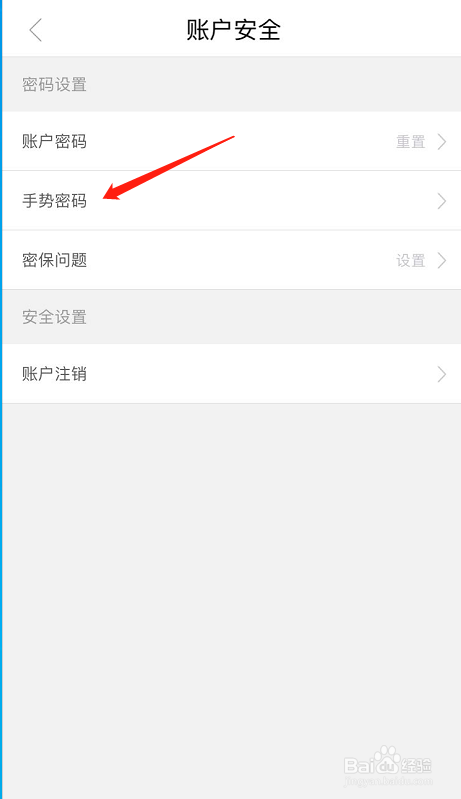 打开账户与平安后,点击手势暗码,如下图所示: