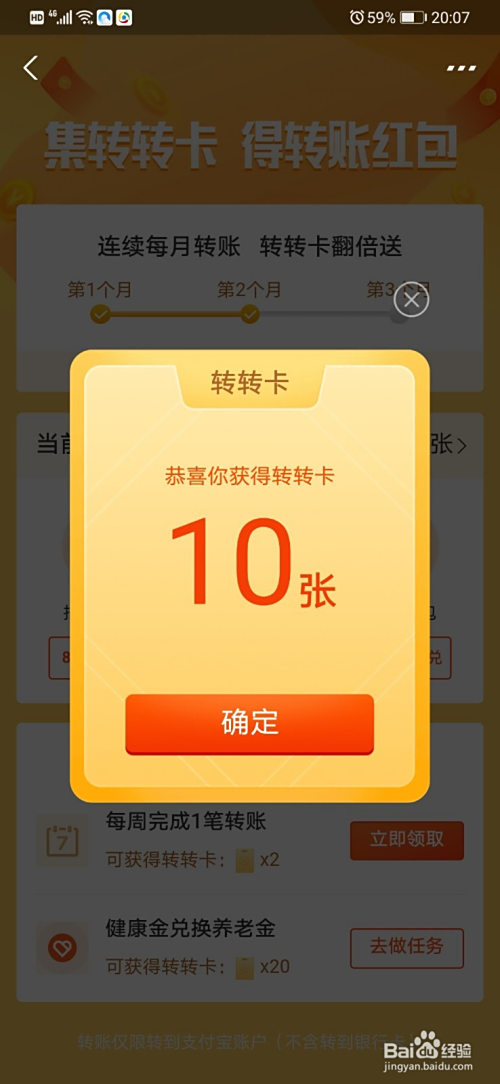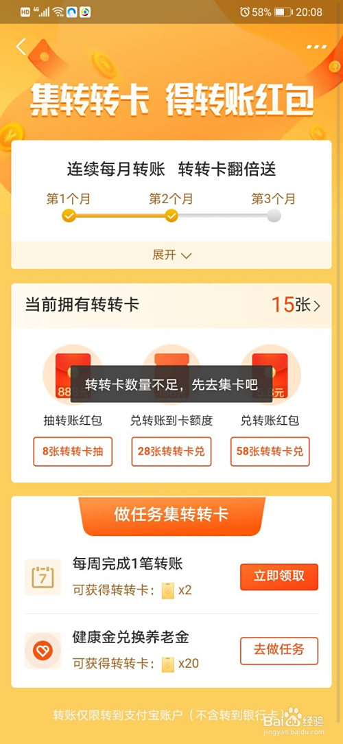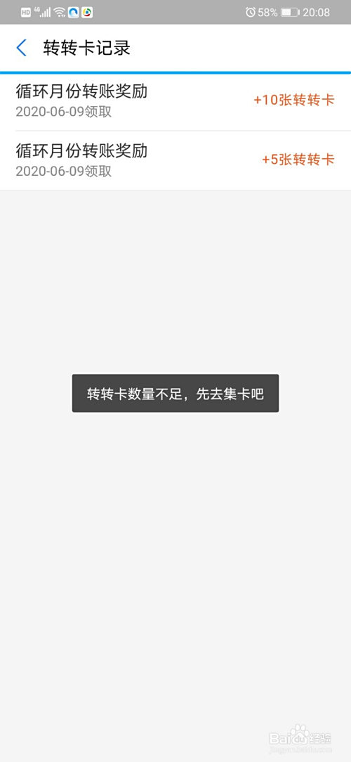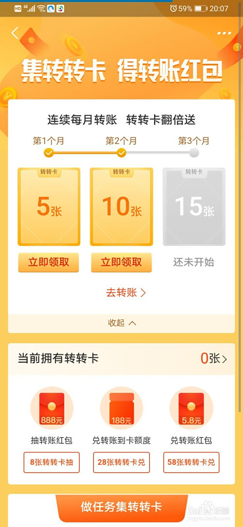 而我们也可以查看我们的领取记实,我们达到55张就可以兑换转账红包了。