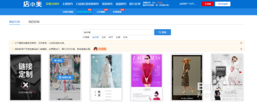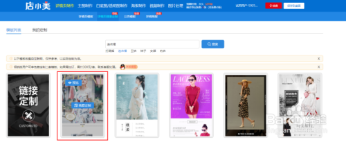 在搜刮到的详情页中选择一个合适的详情页后,点击页面模板中的【我要定制】。