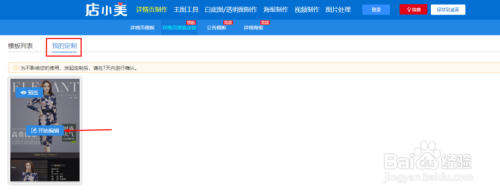 打开店小美,点击【详情页建造】>【详情页搜刮定制】进入定制页面,分为模板列表与我的定制页面。模板列表指定制参考的详情;我的定制指已经建造完当作的定制。