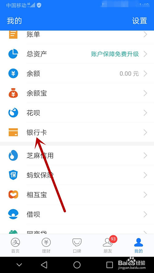 弄好身份认证后,再返回到【我的】界面,选择【银行卡】。