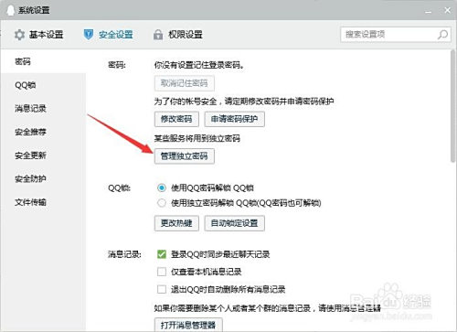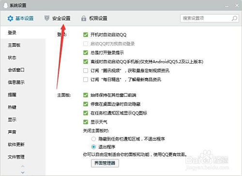 跟着就会弹出一个窗口,选择‘平安设置’。