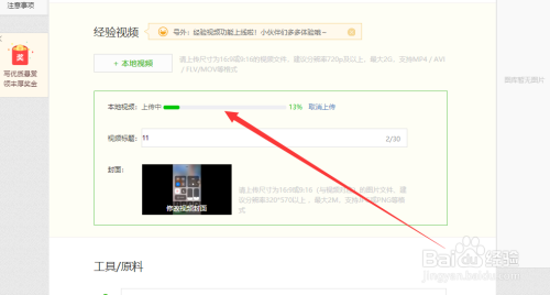 最后去百度经验上传您的视频吧。