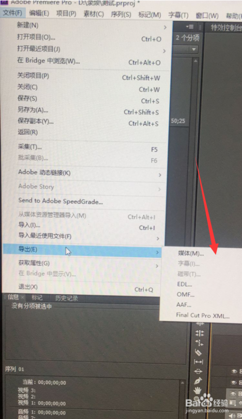 然后在软件左上角找到“文件”点开,选择“导出”再选择“媒体”,将您的视频导出。