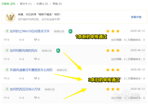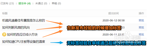 我测验考试了新发布4个带标签经验和点窜一个不带标签已经发布的经验。审核后旧经验还未审核经由过程。
