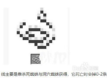 然而,建造垂钓竿是需要线的,这在游戏初期可能不太轻易获得。玩家可以用剑或者铰剪采集在要塞或者烧毁矿井中找到蜘蛛网,或者粉碎森林神庙中的绊线。在游戏中后期,若是玩家全副武装,从蜘蛛身上获取线也是可行的。