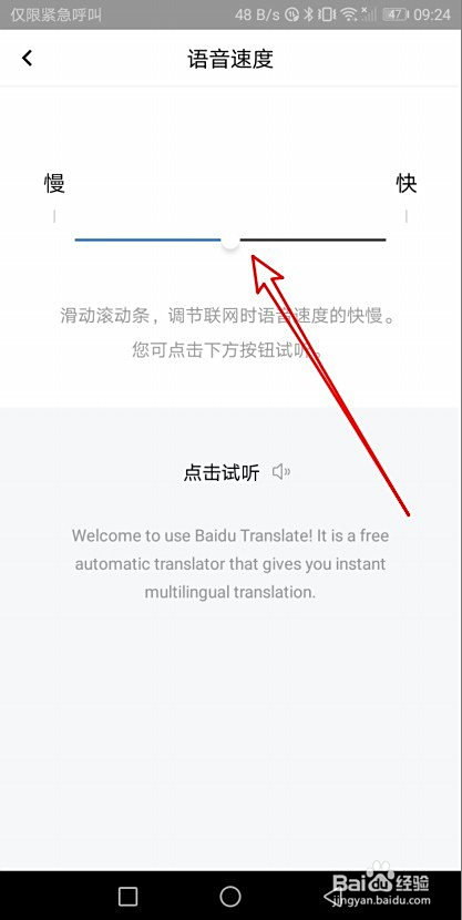 这时会打开语音输入的设置页面,拖动滑块来调整语音速度。