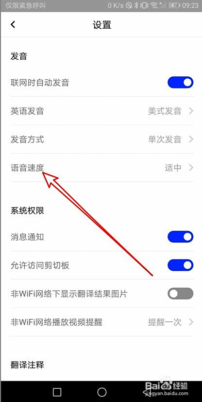 然后再打开的设置页面,点击语音速度的设置项。