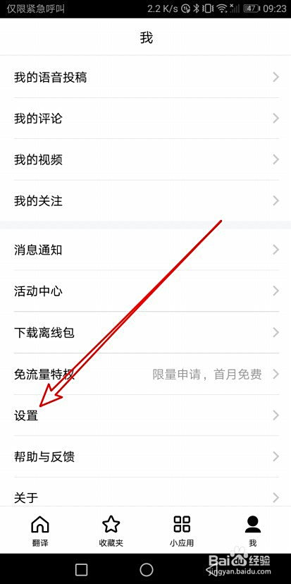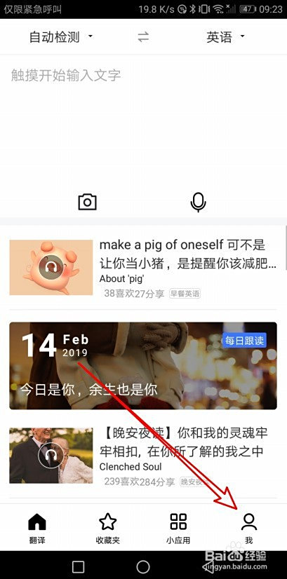 在打开的百度翻译软件本家儿界面点击右下角我的选项卡。