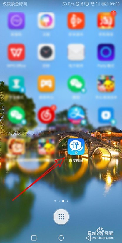 起首解锁手机屏幕,然后点击百度翻译的图标。