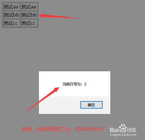 在function方式内,经由过程rowIndex获得行索引,因为索引从零起头,所以需要加1,最后,利用alert()方式输出当前点击的行号。