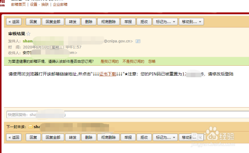 打开邮箱邮件,点击下载打开,同时获得新的PIN码。
