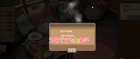 我们点击起头玩,载入比来的存档,可以看到新的女儿此刻是一岁,还没有名字,还在婴儿床上。这个时辰有旁白君为我们介绍整个环境。