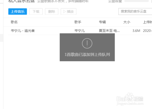 上传之后,系统就会有所提醒,今后我们就不消担忧电脑里丢掉这些歌曲了。