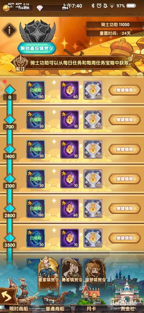 第六:点击左上角的【解锁高级犒赏令】点击开启即可。