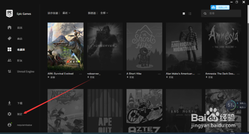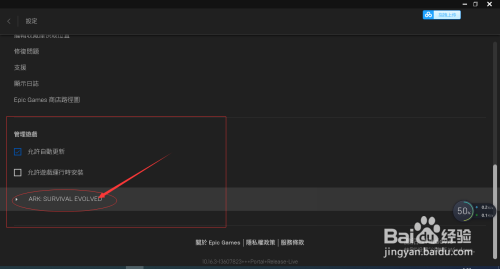 在设置界面下翻可以看到“ARK:SURVIVAL EVOLVED”也就是方舟保存进化的英文名称,点击它。