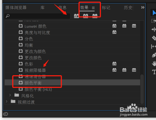 打开结果窗口。找到视频结果-颜色校正-颜色均衡。