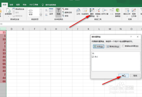 最后,将新的列选中,点击上方的【数据】选项,再点击【删除反复值】按钮即可。
