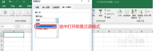 选中“打开”后确定,则该单位格在输入时将一向是中文模式。