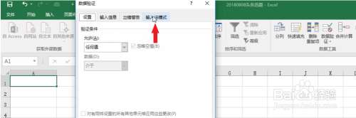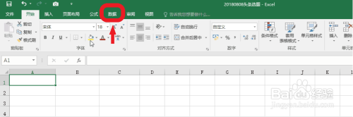 - [1]选中但愿设置输入法的单位格后,选择“数据”项目卡。