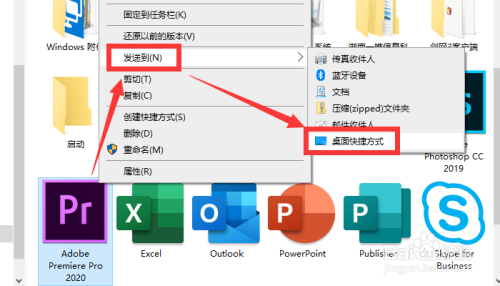然后选中PR图标,右键选择【发送到】-【桌面快捷体例】,这样PR Pro 2020就安装当作功啦。