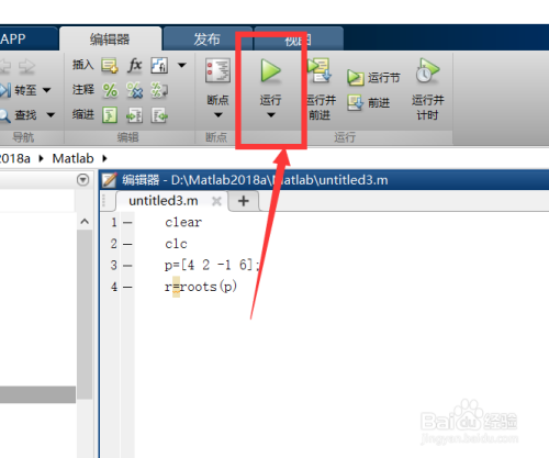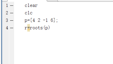操纵roots函数可以求多项式的根,挪用格局是roots(p),p是多项式由高阶到低阶的系数,在新建剧本文件中输入下图所示程序,这里以求多项式4x^2+2x^2-x+6=0的根为例