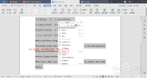 快捷键ctrl+a全选数据,点击鼠标右键,选择字体;