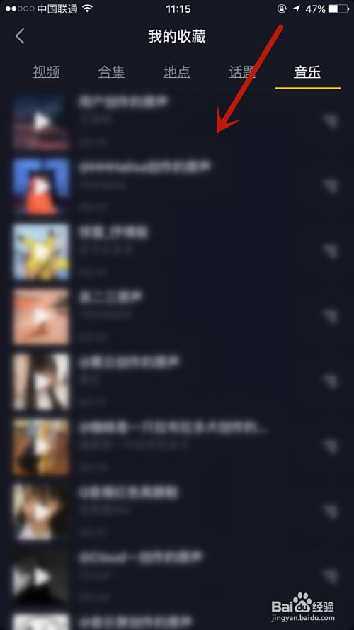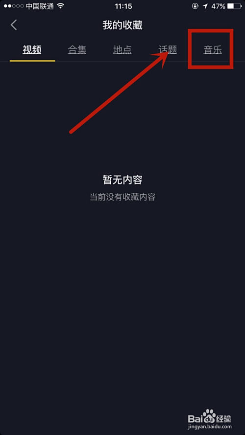 3.点击最右侧的音乐,进入后页面就会显示出本身保藏的所有音乐。