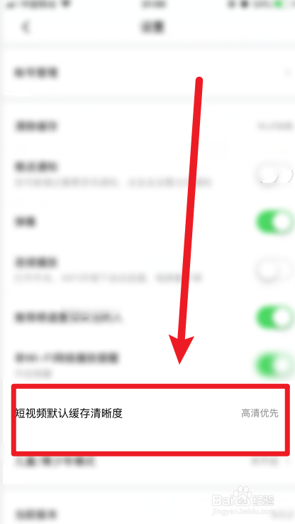 然后点击【短视频默认缓存清楚度】选项,调整画质,节流手机缓存的流量。