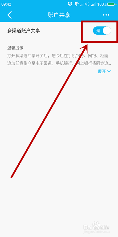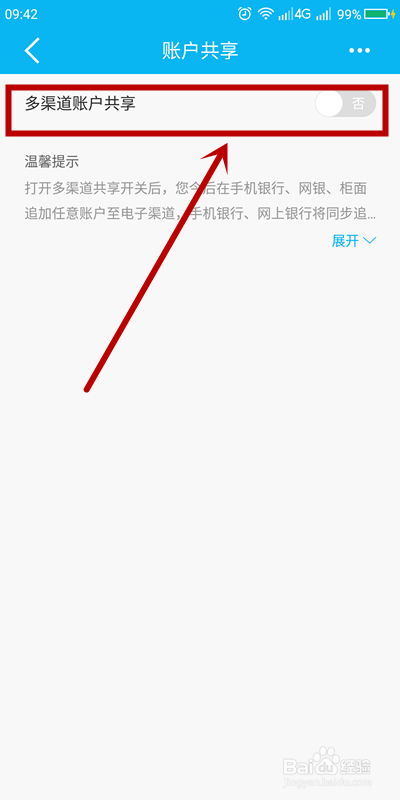 5、在【账户共享】页面,点击【多渠道账户共享】,功能开关打开即可