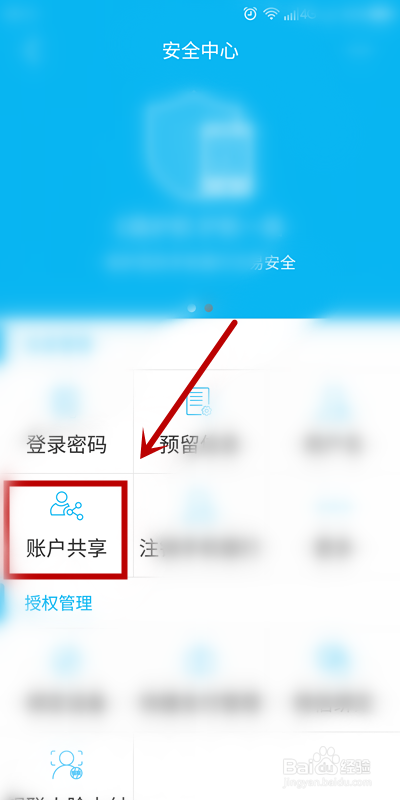 4、进入【平安中间】页面后,找到并单击【账户共享】选项